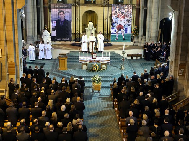The pallbearers included his brother Neil and former Great Britain internationals Paul Sculthorpe and Shaun Briscoe while England coach Steve McNamara and former St Helens team-mates Tommy Martyn, Chris Joynt, Steve Hall and Bernard Dwyer led the bidding prayers.